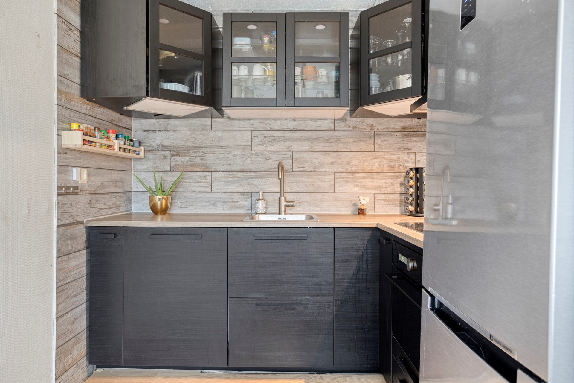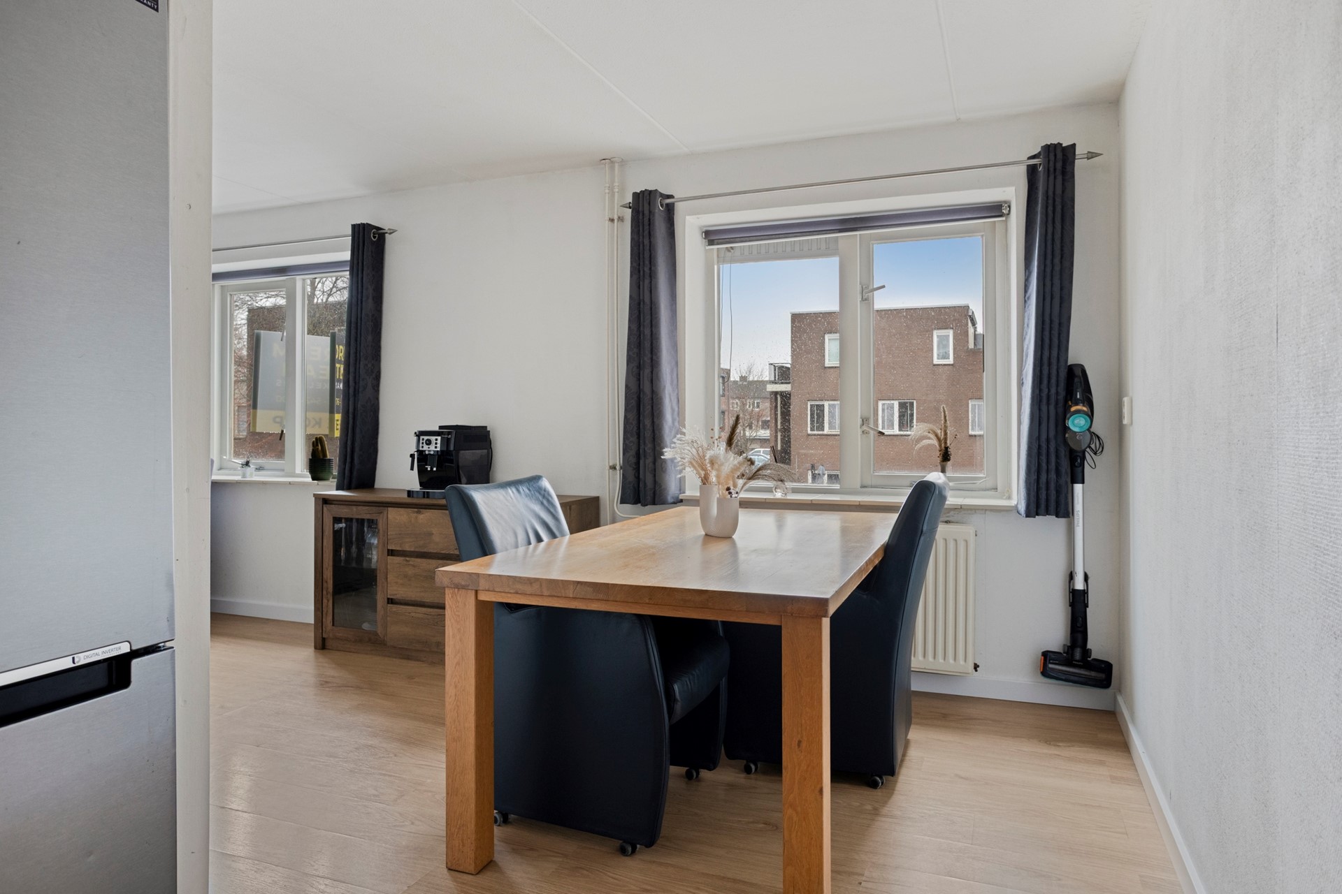 De lichte woonkamer valt direct op door de grote raampartijen, waardoor er een prettige en open sfeer ontstaat. De open keuken (2022) sluit naadloos aan op de leefruimte en is modern uitgevoerd met diverse inbouwapparatuur. Hierdoor ontstaat een fijne plek waar koken en samenzijn perfect samenkomen.