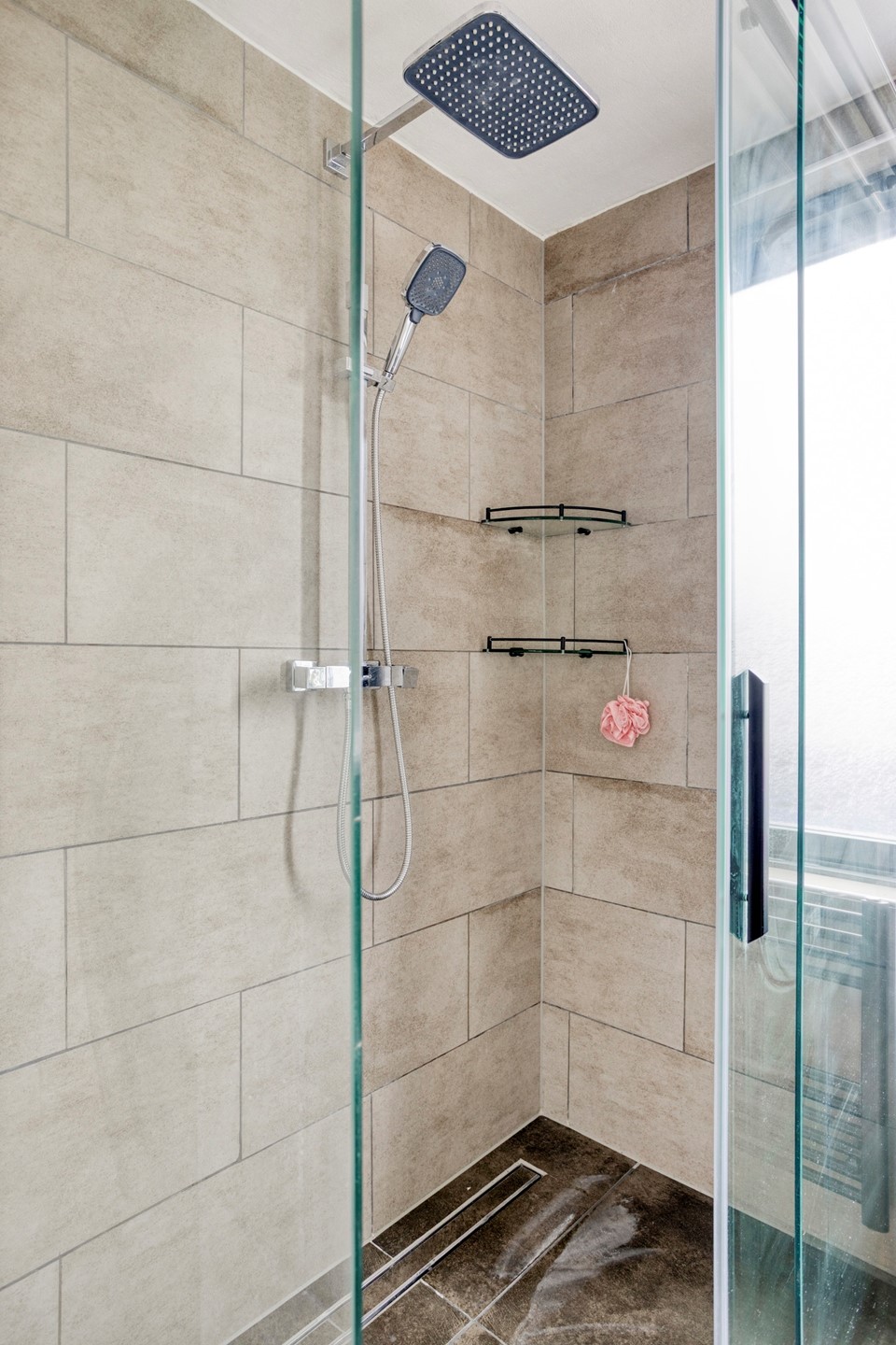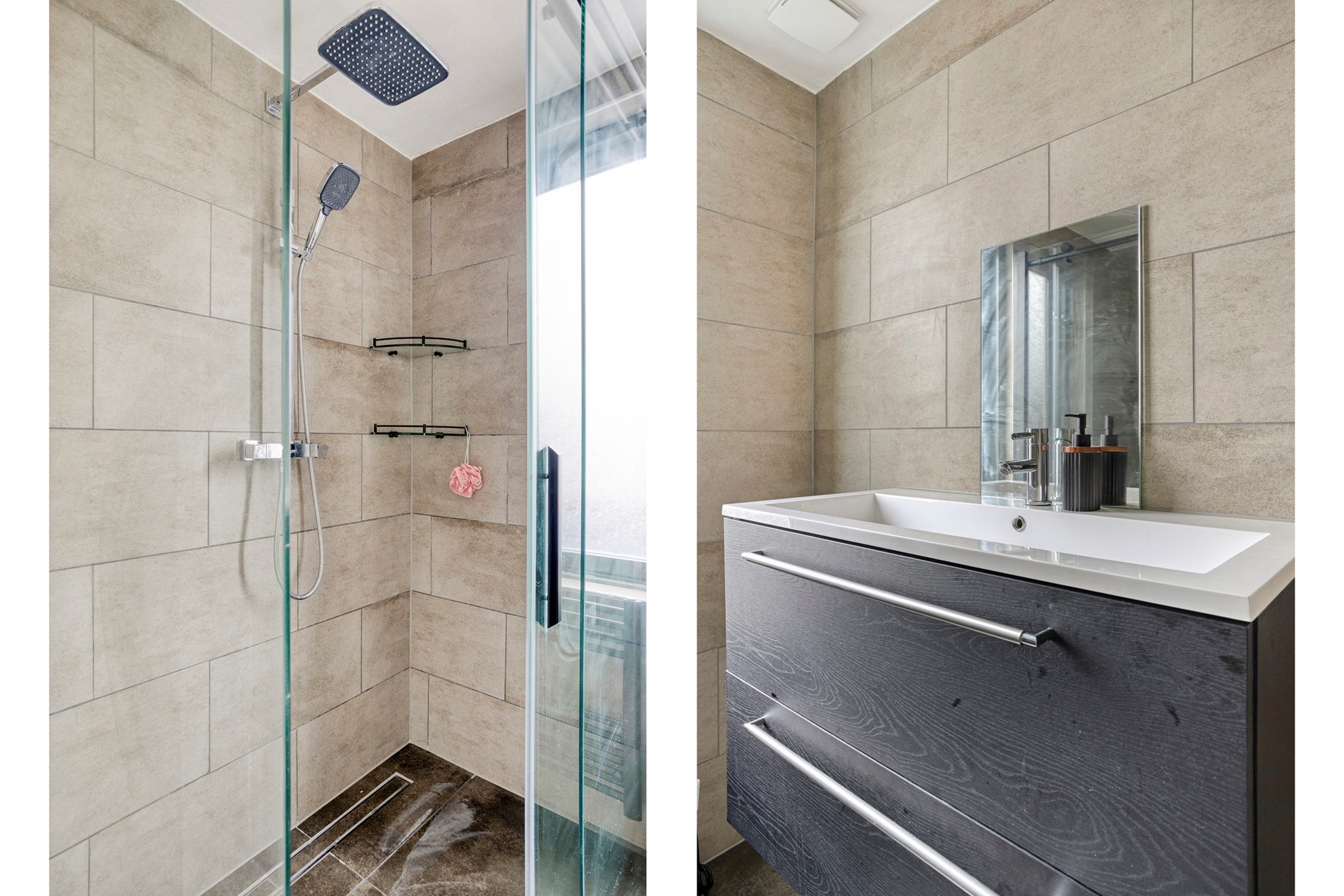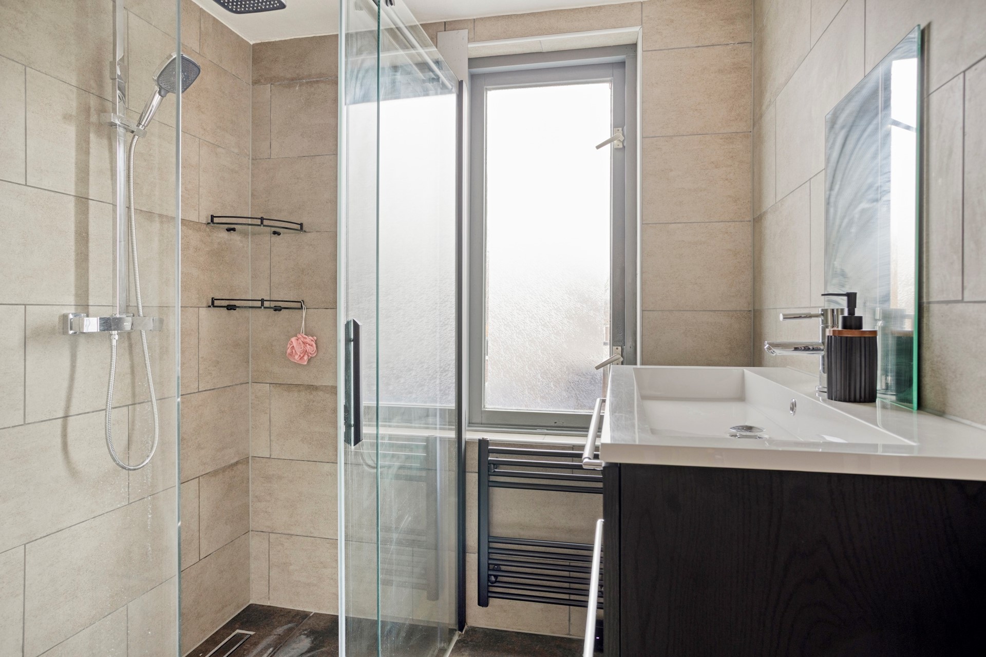De badkamer is in 2025 vernieuwd en modern afgewerkt. Hier beschik je over een frisse, eigentijdse ruimte waar comfort centraal staat.