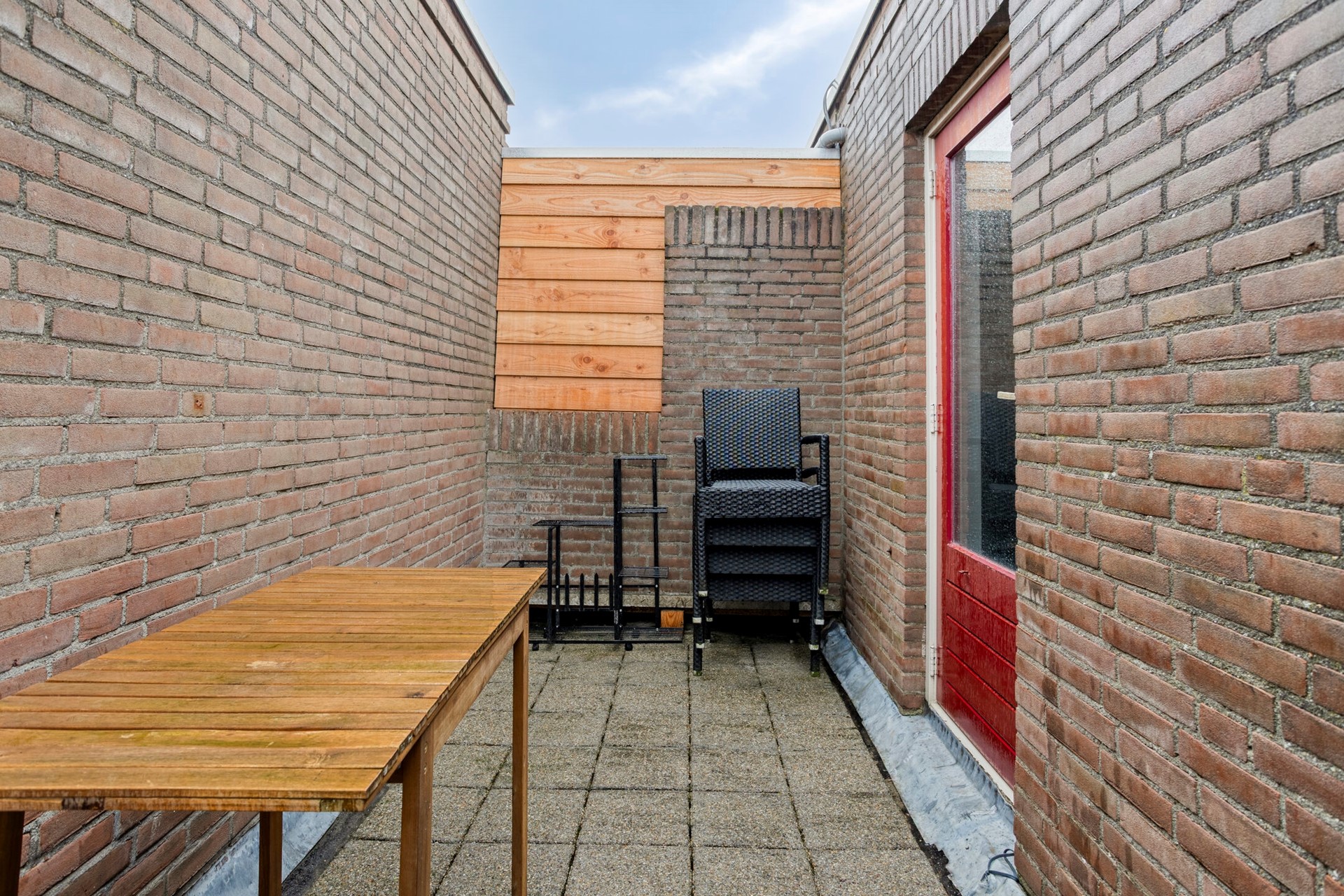 Het ruime dakterras op het zuidwesten biedt veel privacy en is een heerlijke plek om in de middag en avond van de zon te genieten. Perfect voor een barbecue of een ontspannen zomeravond.